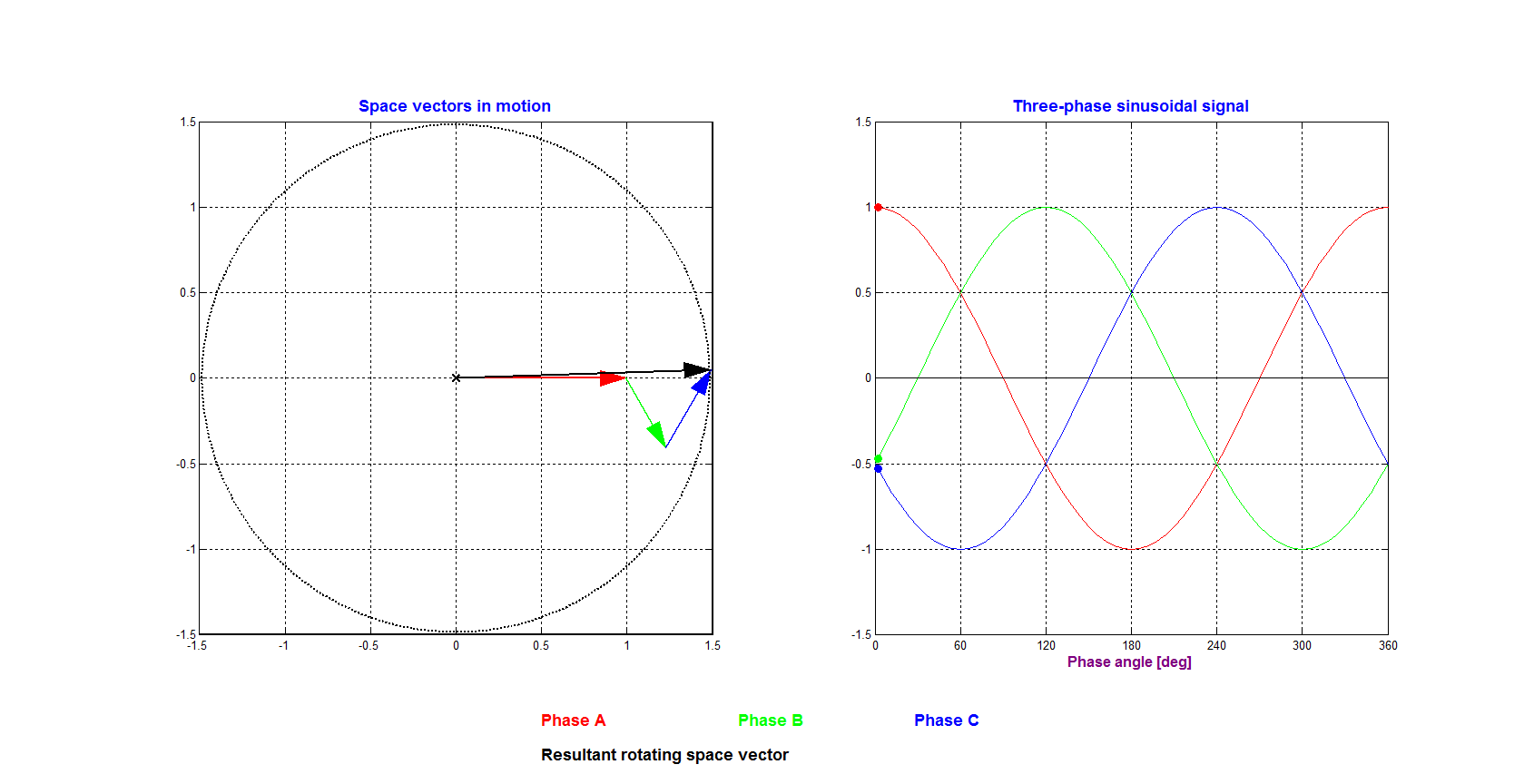 - Moteur synchrone : expression du couple exercé sur un dipôle magnétique soumis à un champ B tournant, champ tournant créé par une bobine ou deux bobines alimentées en courant sinusoïdal.