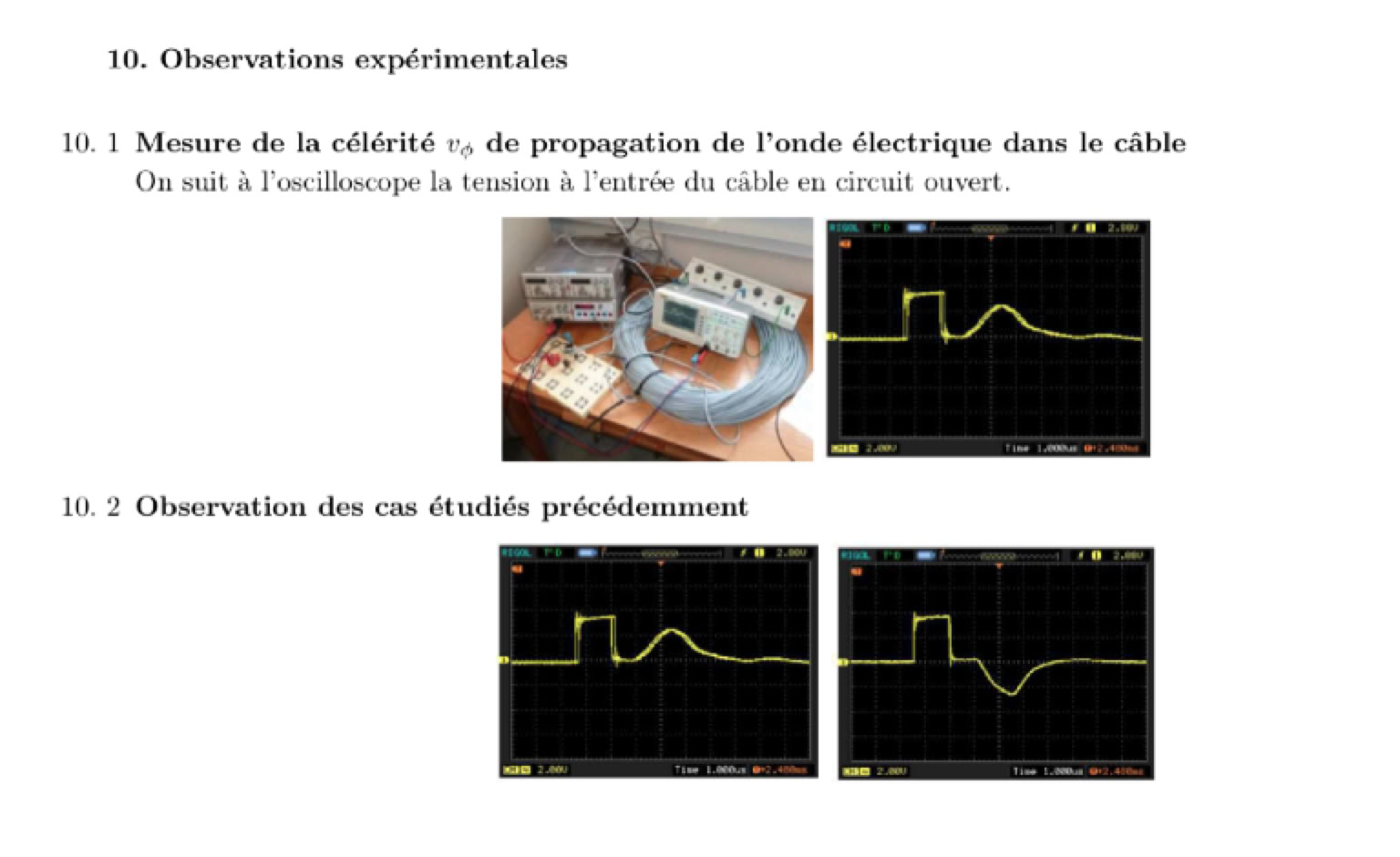 - ondes électriques sur un câble électrique : basé sur les équations électriques et les deux paramètres i(x,t) et u(x,t), notion d’équation de d’Alembert, impédance Z, u = +Z.i ou -Z.i en fonction du sens de propagation, (les cas de réflexion sur une impédance au bout du câble seront faits en TP ce mercredi)