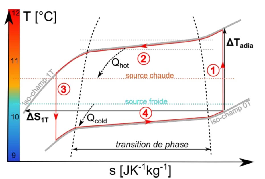 Réfrigération magnétique utilisant l’effet magnéto-calorique. Possibilité de remplacement des machines thermodynamiques réfrigérantes à fluide.