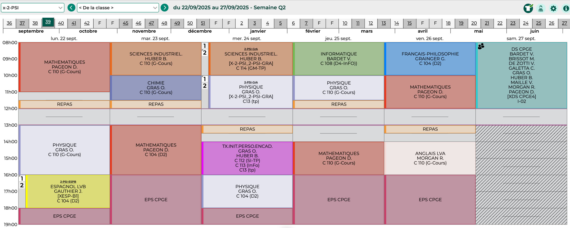 Emploi du temps pour l’année 2025-2026