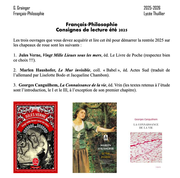 3. Georges Canguilhem, La Connaissance de la vie, éd. Vrin (les textes retenus à l’étude sont l’introduction, le I et le III, à l’exception de son premier chapitre).