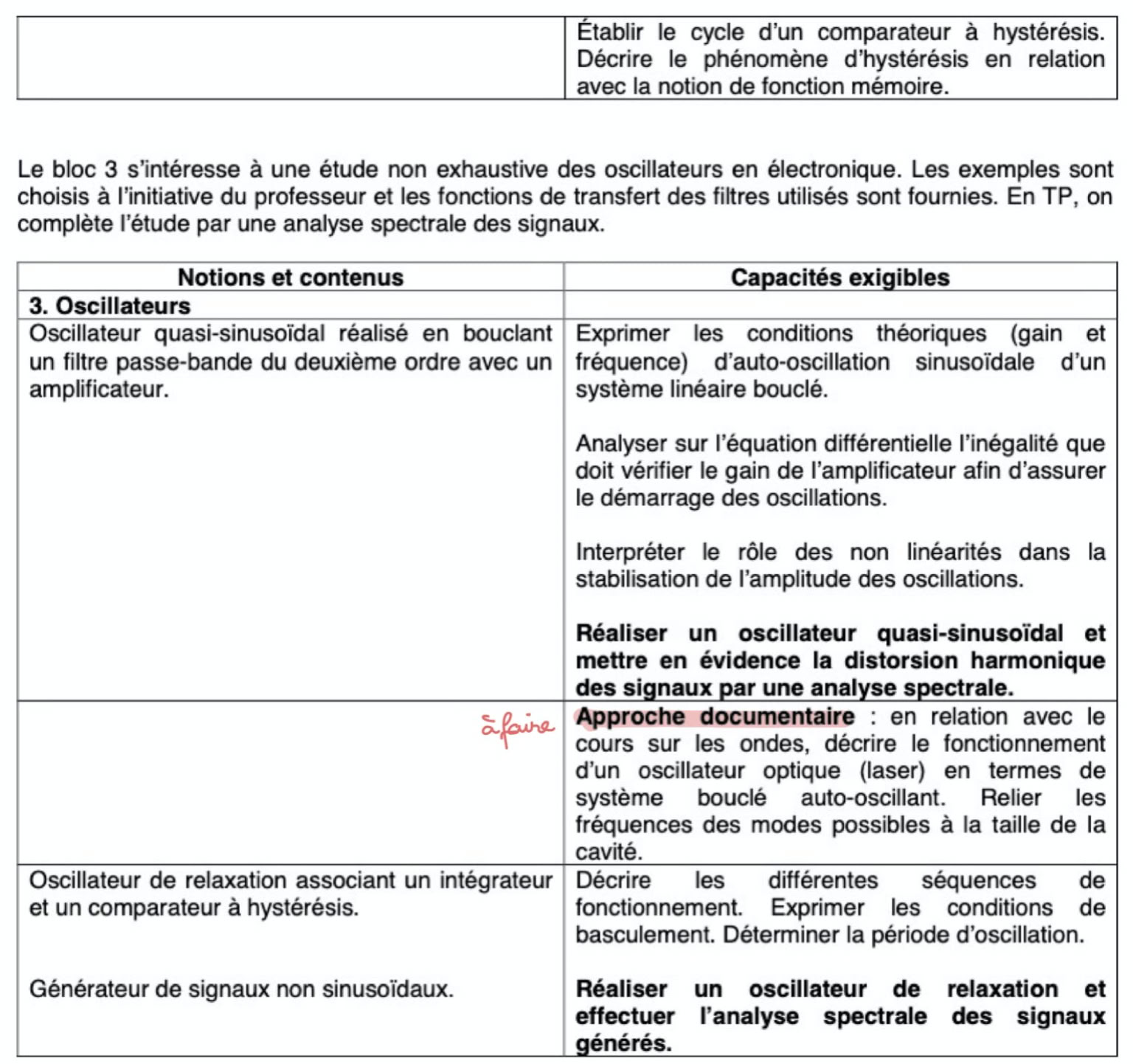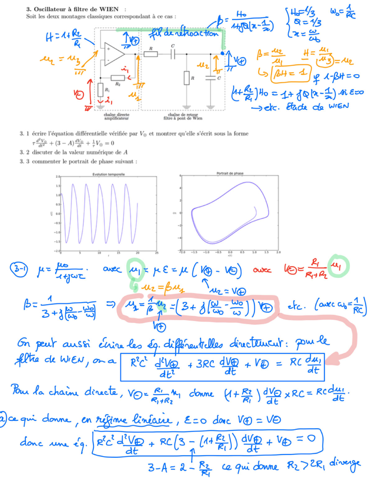 lundi 22 de 9h à 11h00 :PHYSIQUE C110 = fin du poly 4 sur les oscillateurs = cas des oscillateurs quasi-sinusoïdaux