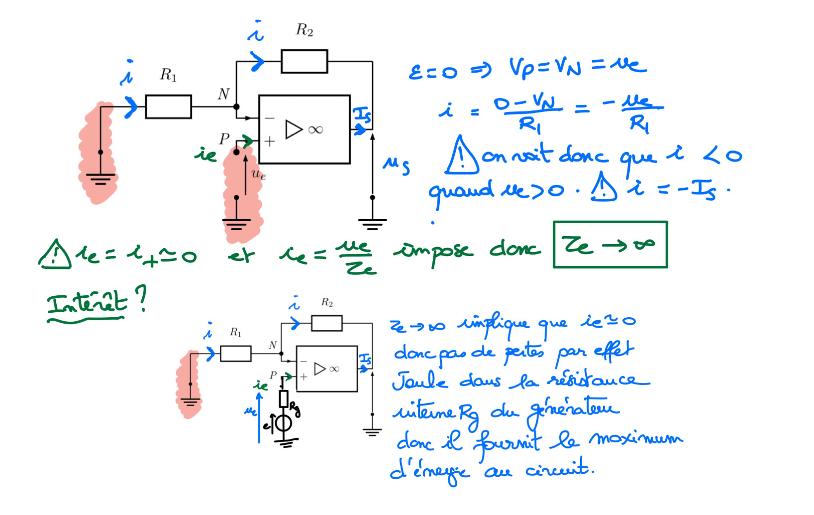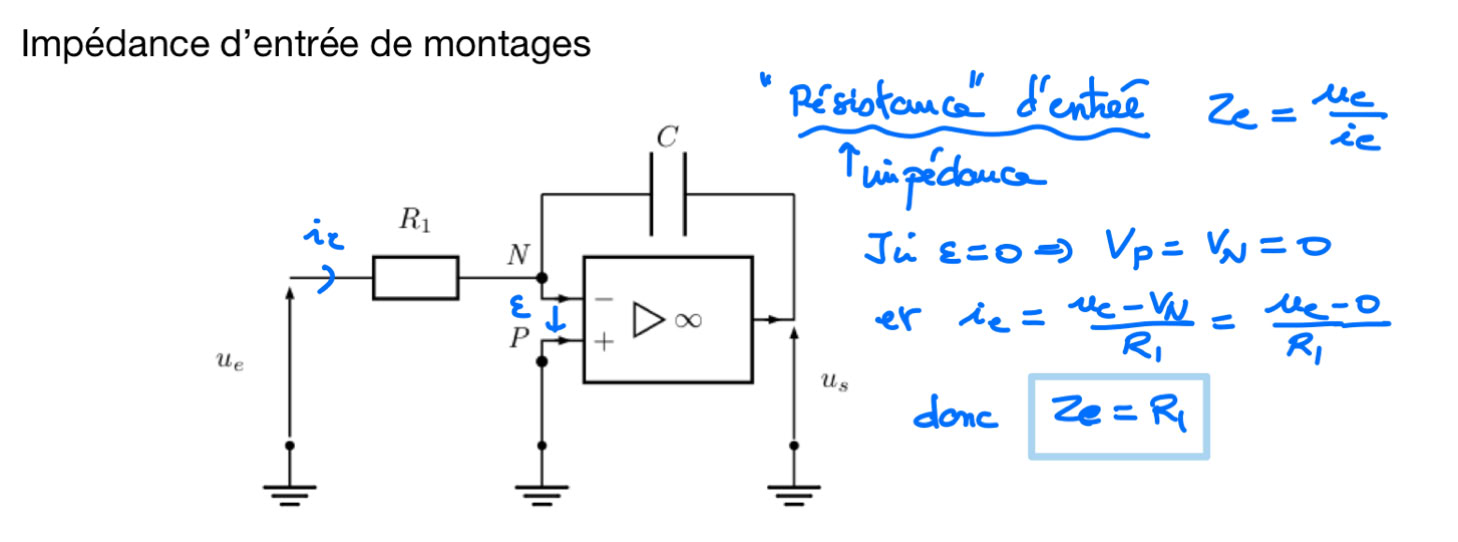 4- résistances d’entrée des montages à ALI ampli inverseur et non inverseur, après avoir démontré les fonctions de transfert