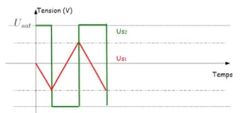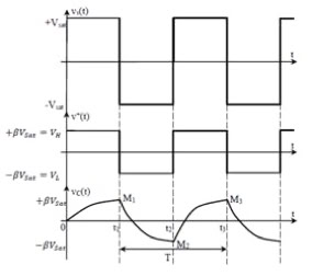 - Oscillateur à relaxation «compacté» : on trouve donc un signal créneau +15 ou -15V en sortie du comparateur et un signal en exponentielles croissante-décroissante aux bornes du condensateur.