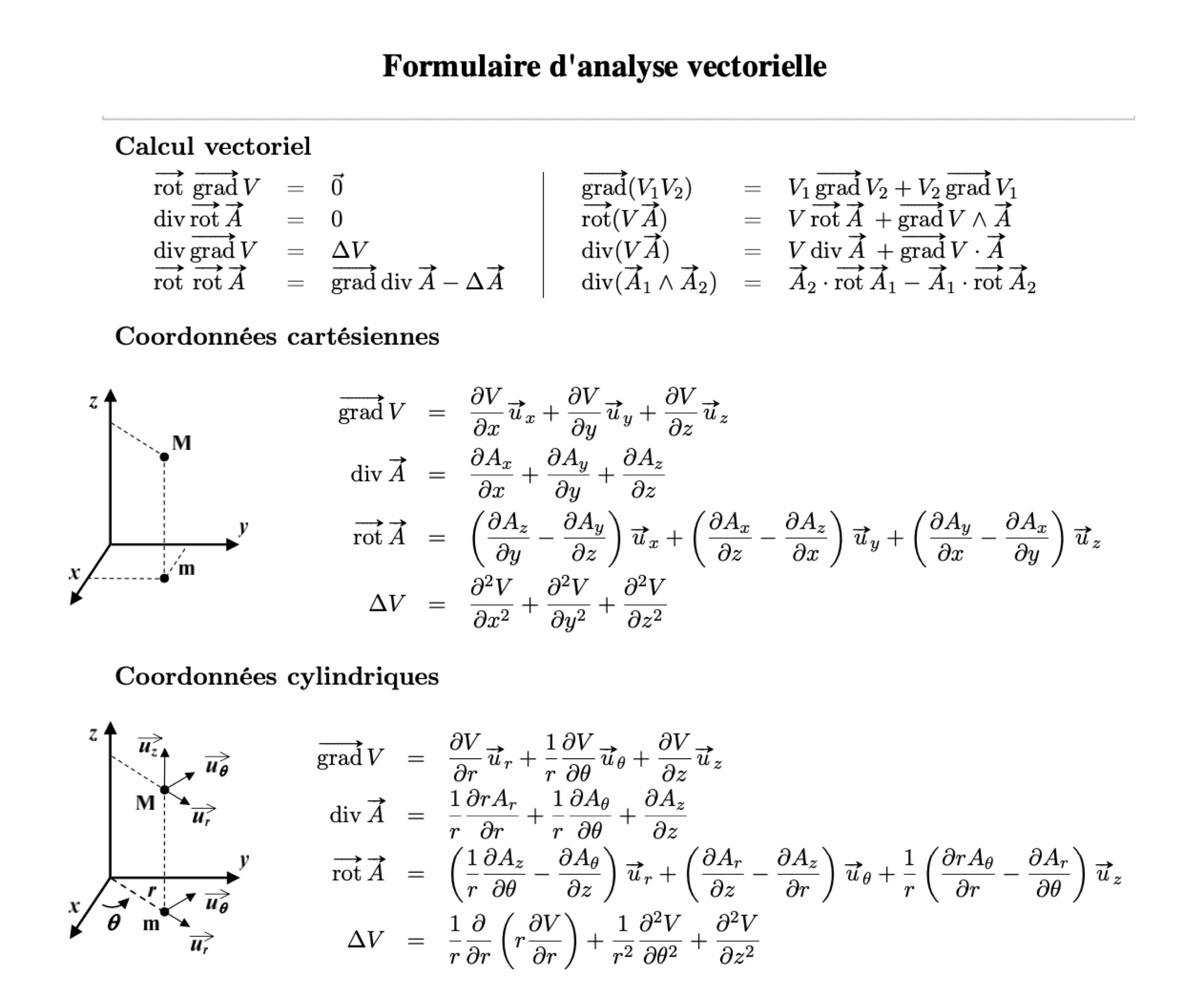 Formulaire : gradient et divergence utilisés en électrostatique