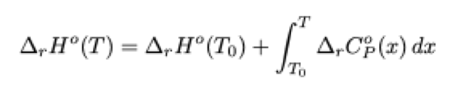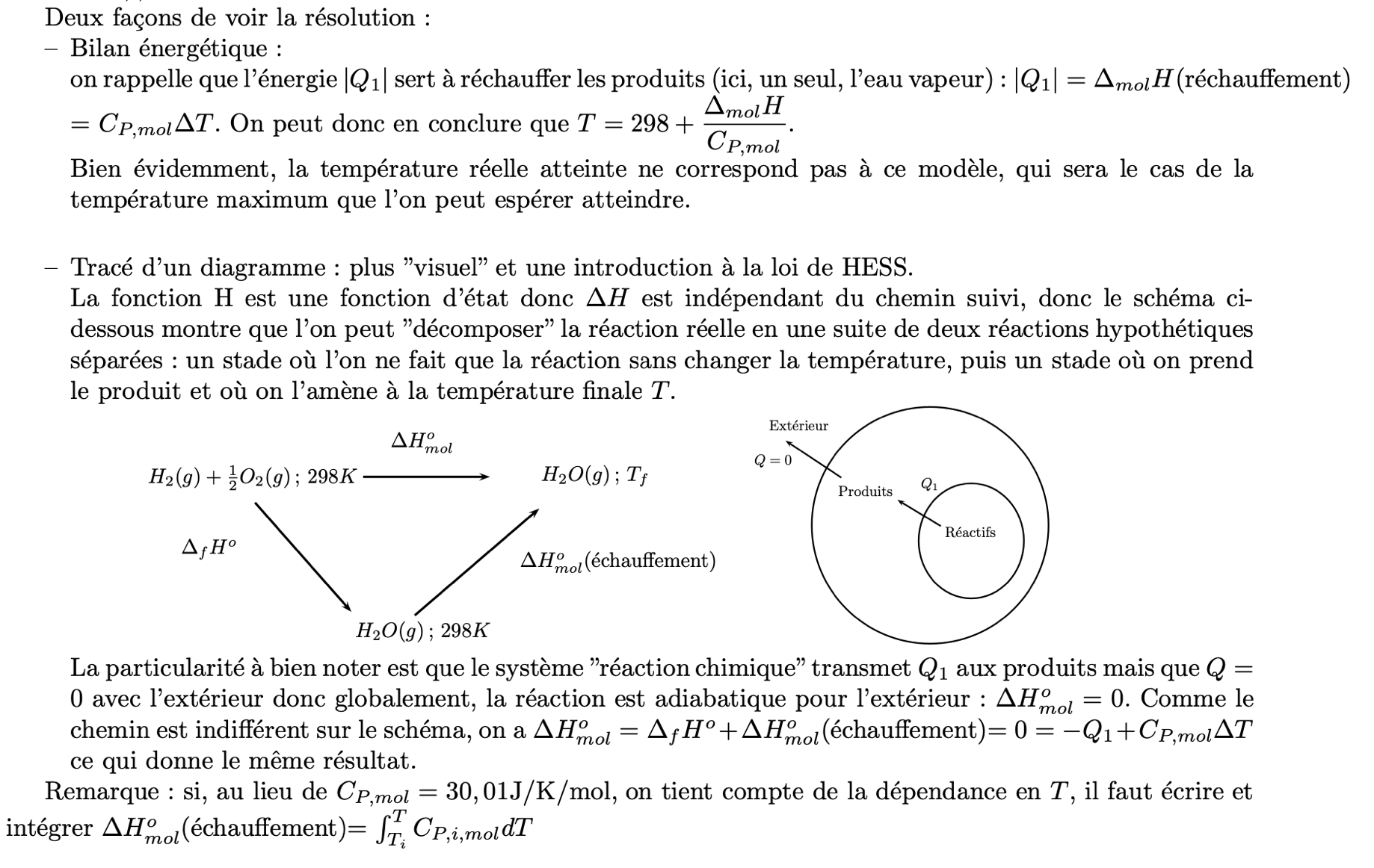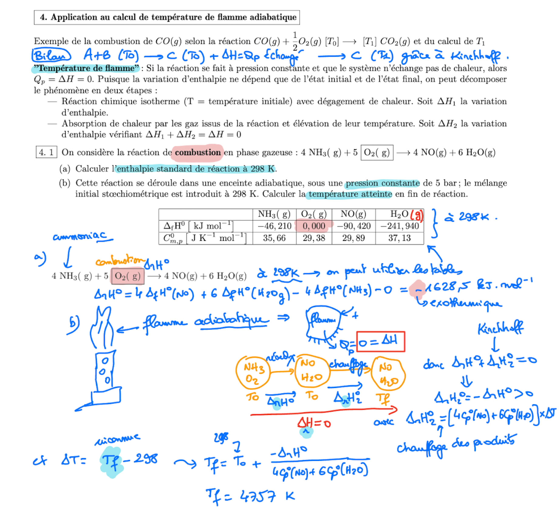 - on ajoute en chimie : utilisation de la loi de Kirchhoff pour calculer l'enthalpie de réaction standard à une autre température que 298K, cas d'une température de flamme; idem Kirchhoff avec S