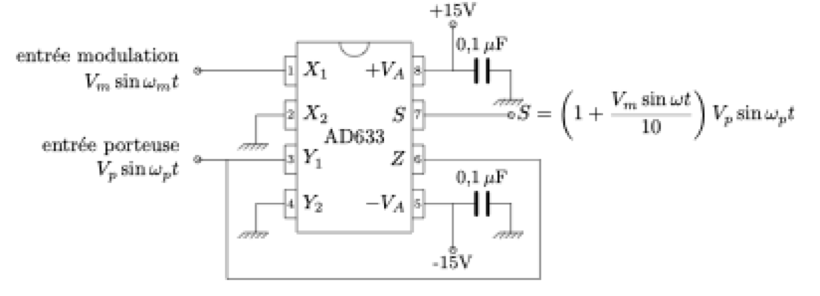 a) Modulation d'amplitude par utilisation d'un multiplieur, étude du spectre de Fourier associé, doublet et triplet, démodulation d'amplitude par utilisation d'un multiplieur (juste citer rapidement la détection asynchrone avec diode = détection de crêtes), conséquence sur le spectre de Fourier