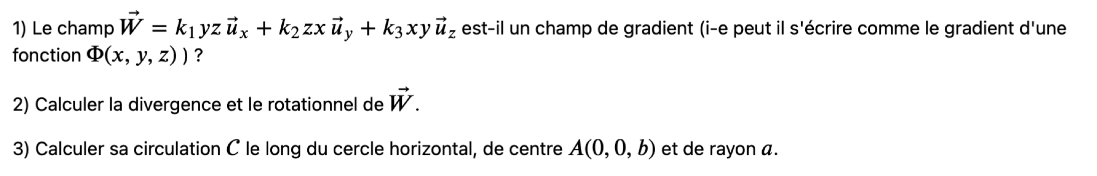 Il s’agit d’un exemple donné en colle. Cela montre la difficulté calculatoire de bien finir un calcul de circulation lorsque l’on n’est pas dans le cas simple d’un contour comme avec le potentiel ou à la rentrée avec un contour d’Ampère. Ici le champ E n’est pas uniforme sur le contour circulaire, donc on ne peut le faire sortir du calcul intégral comme pour les calculs de différence de potentiel, qui donne carrément un résultat indépendant du « chemin » et ne dépend plus que des bornes.