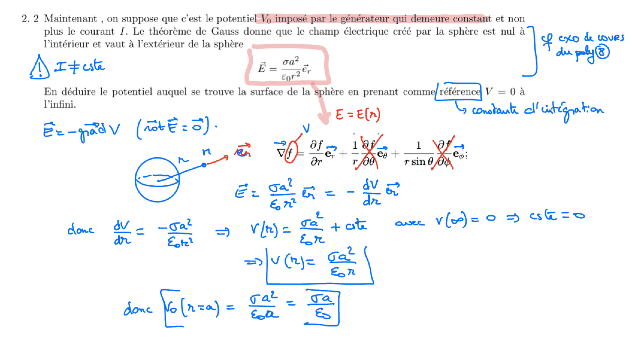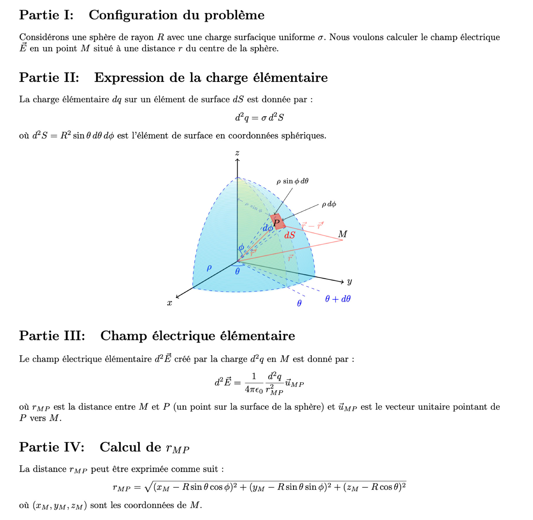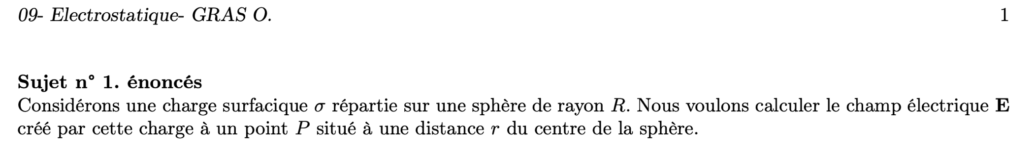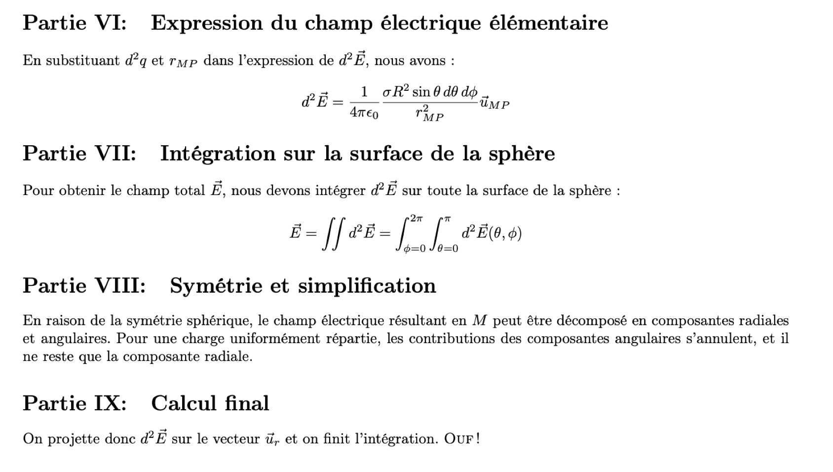 Calcul direct du champ créé par une répartition sphérique surfacique : LONG !!