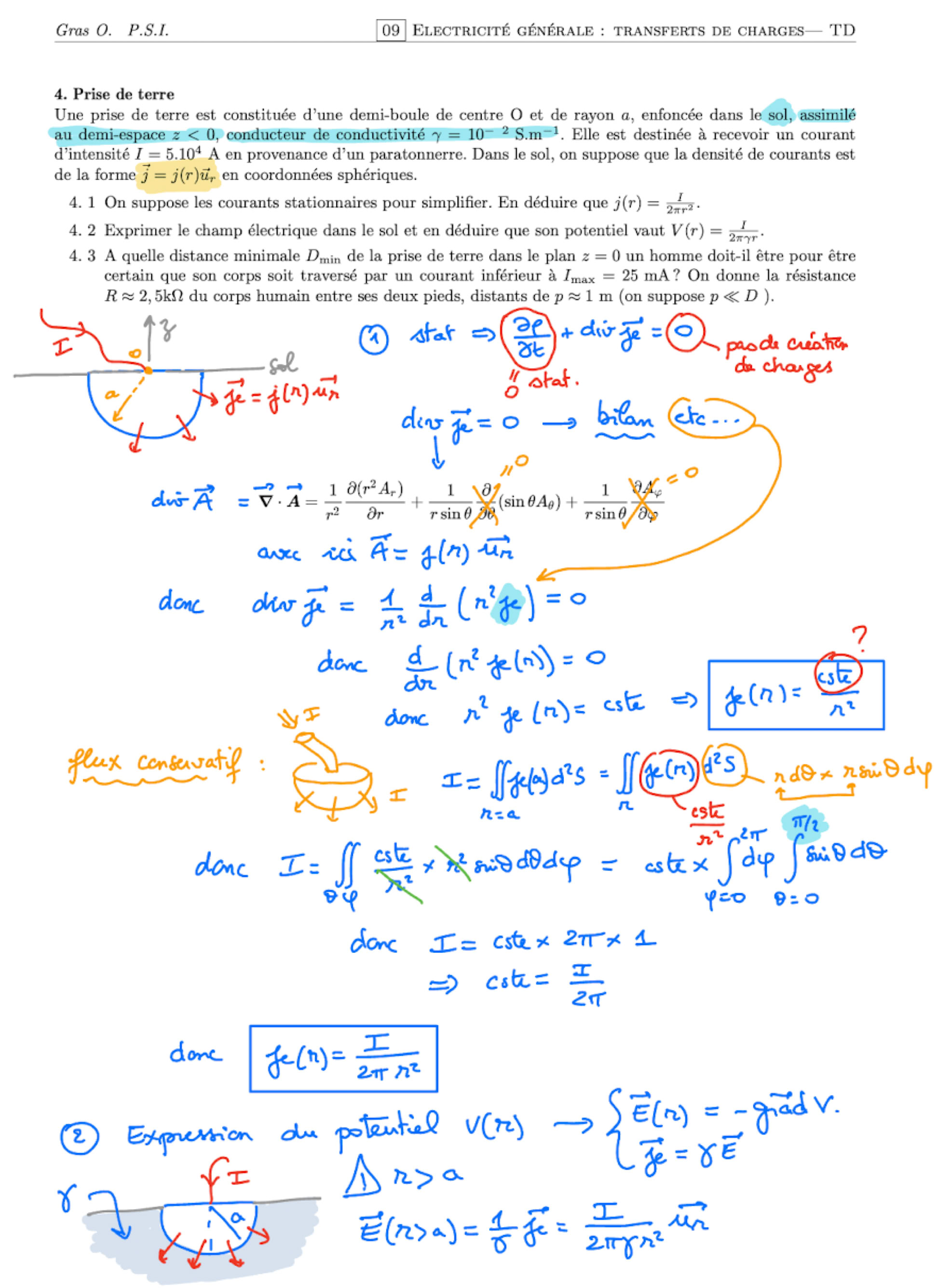 Vecteur densité de courant : TD poly 9 et devoir de révision 1