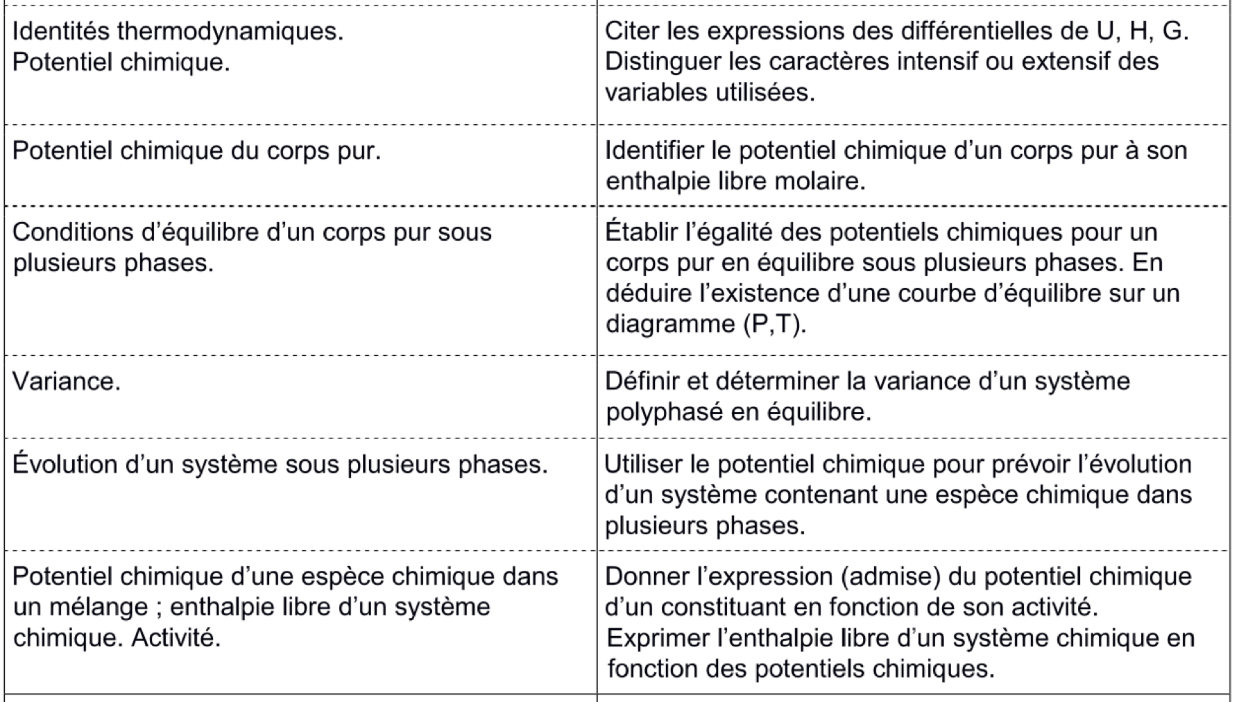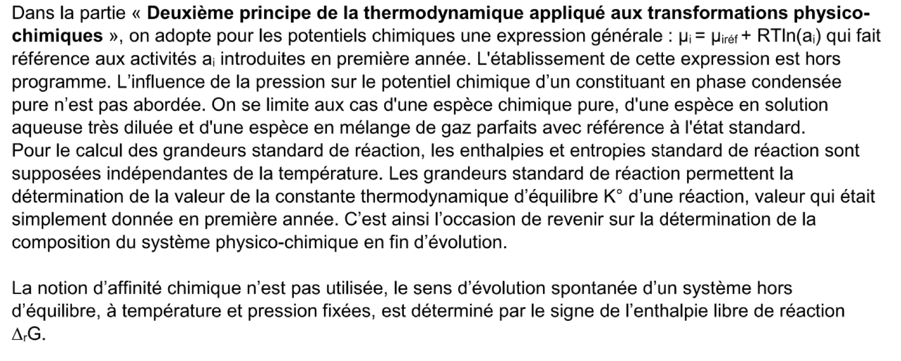 Mardi : chimie, notion de potentiel chimique