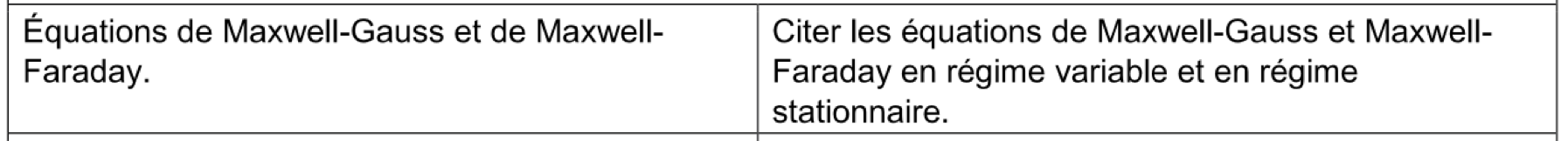 d) loi d’Ohm locale, vecteur densité de courant, modèle de Drude, expression de résistances R (poly 9), loi de conservation locale de la charge, loi locale de Maxwell-Gauss, puissance volumique échangée par effet Joule (cours mais pas d’exemple vu)
