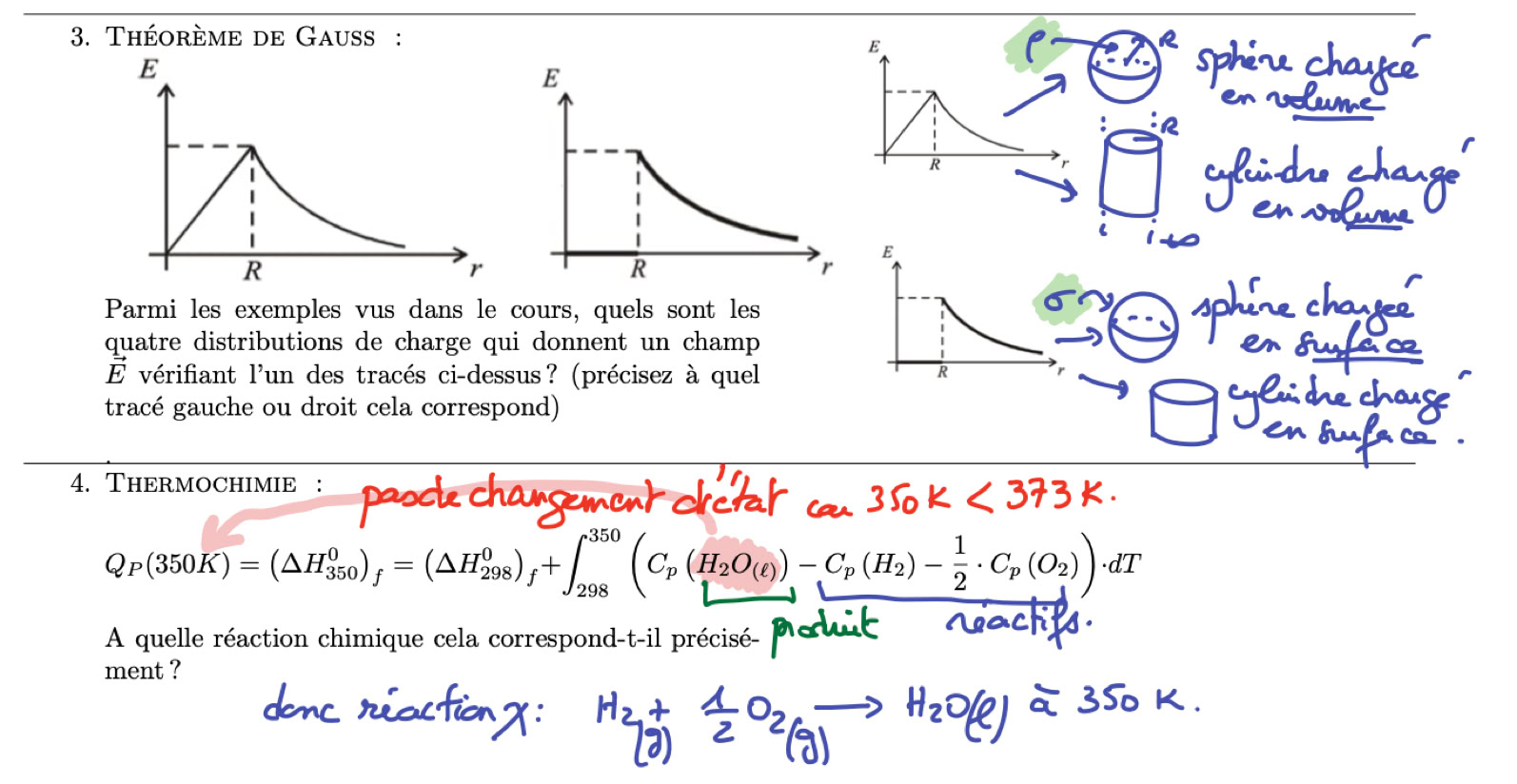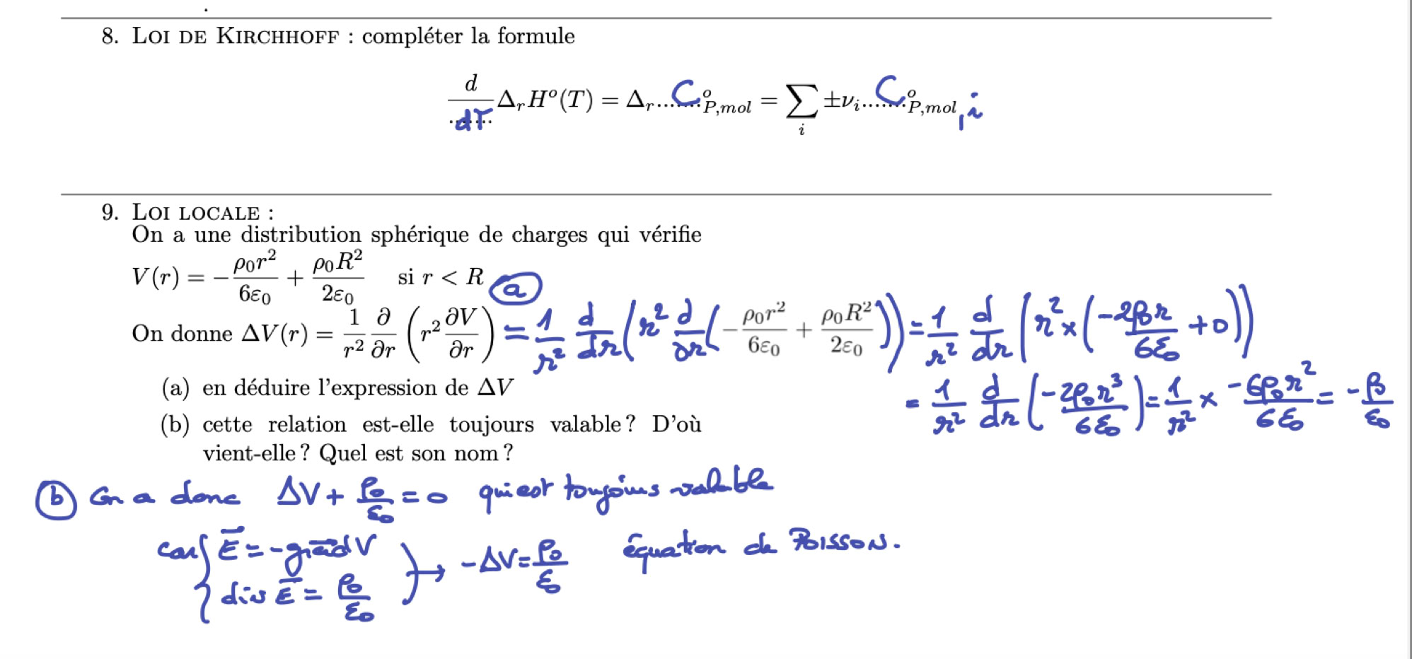 c) calcul de champ E : direct (exemples très très simples), avec V (exemples simples), lien avec le gradient entre V et E, calculs avec le th de GAUSS + étude du laplacien + loi de Laplace ou de Poisson