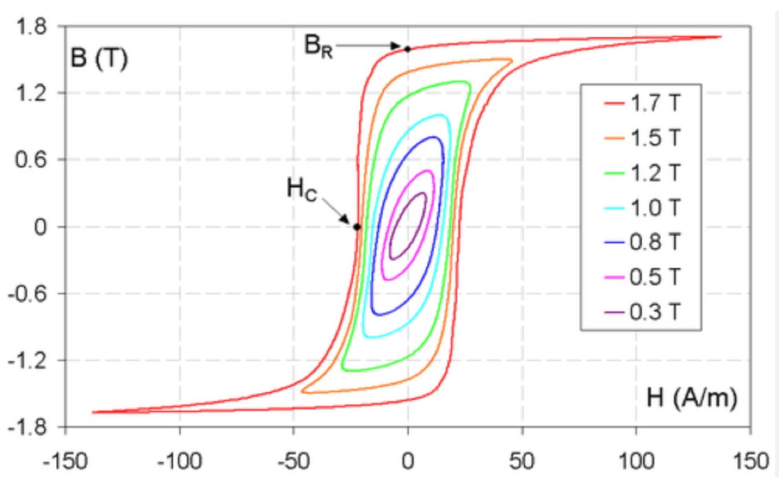 On voit que le signal jaune n’est pas linéaire et correspond à B alors que le signal bleu en dessous correspond à i (donc à H) sinusoïdal
