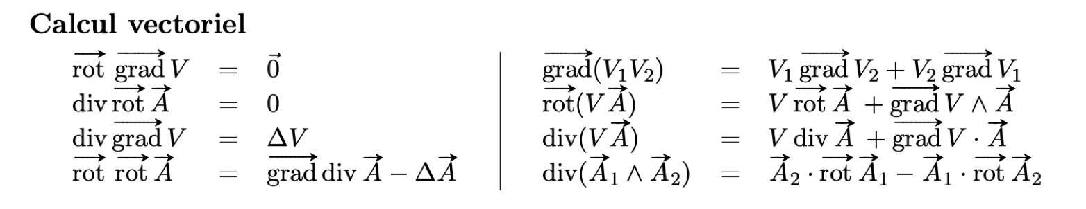 — ARQS : loi de conservation de la charge, les 4 équations de Maxwell, équation de Maxwell Gauss pour calculer un champ E avec l’expression de div(), équation de Maxwell Ampère pour calculer un champ B avec l’expression de rot()