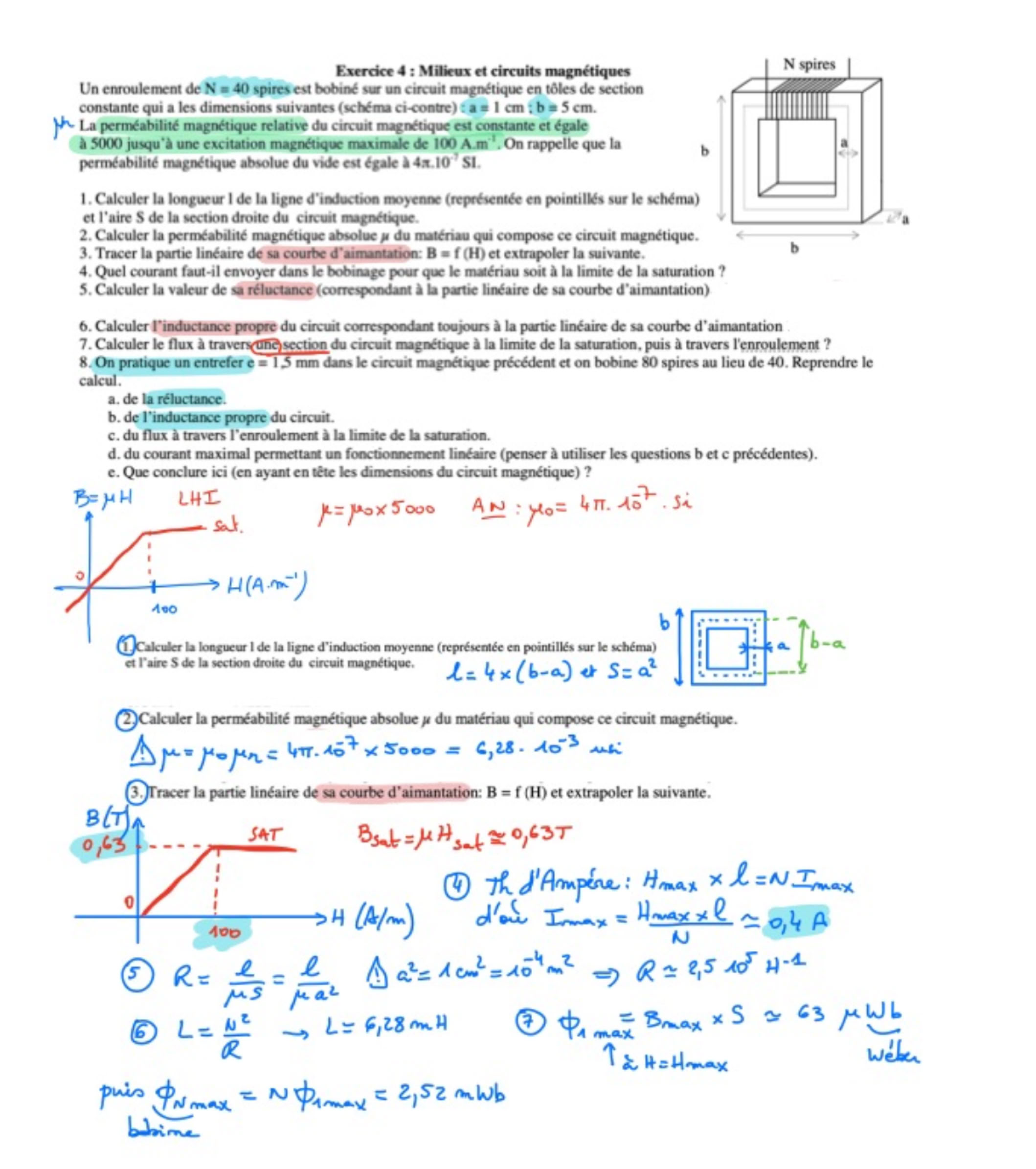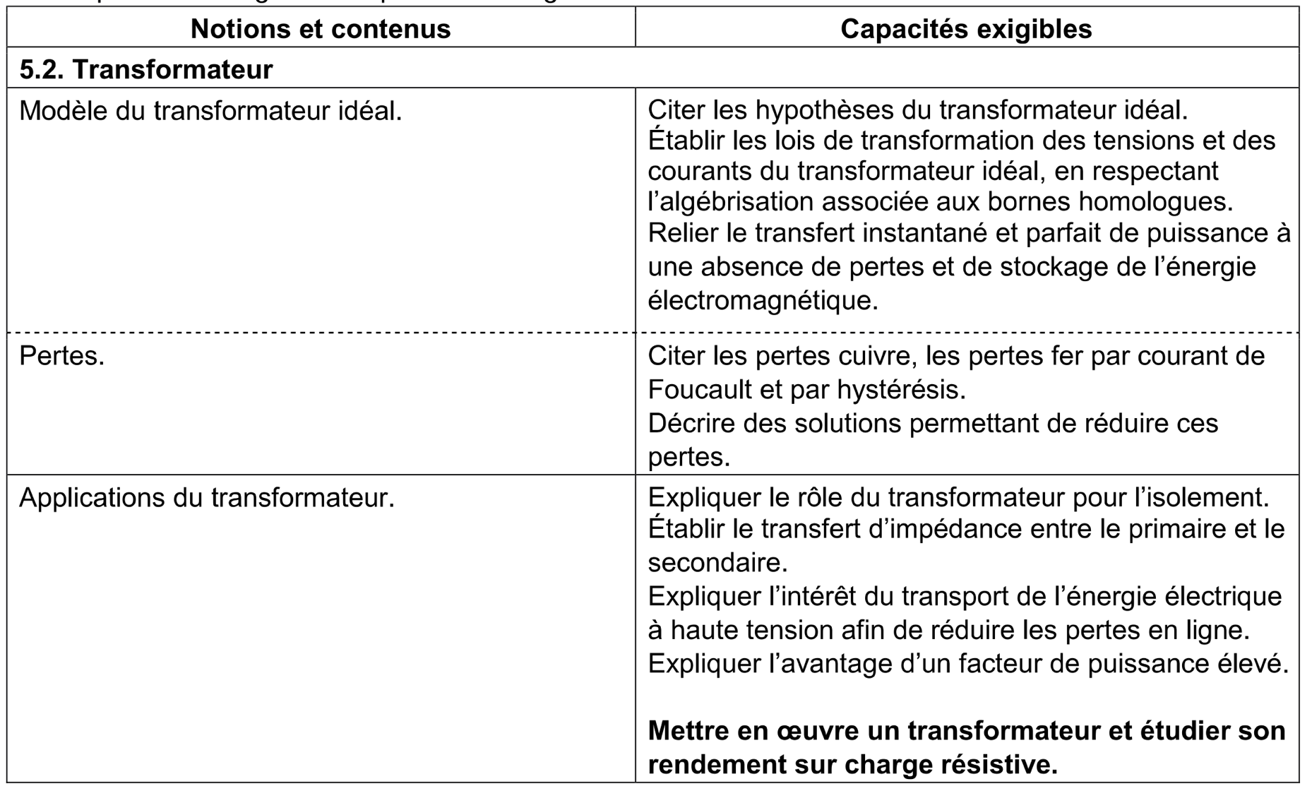 - milieu magnétique : cycle d’hysteresis + pertes par hysteresis, champ rémanent, champ coercitif, effet mémoire, définition de H et M + le cas idéal (cours et TP) du transformateur avec relations en tensions et courants + adaptation d’impédance.
