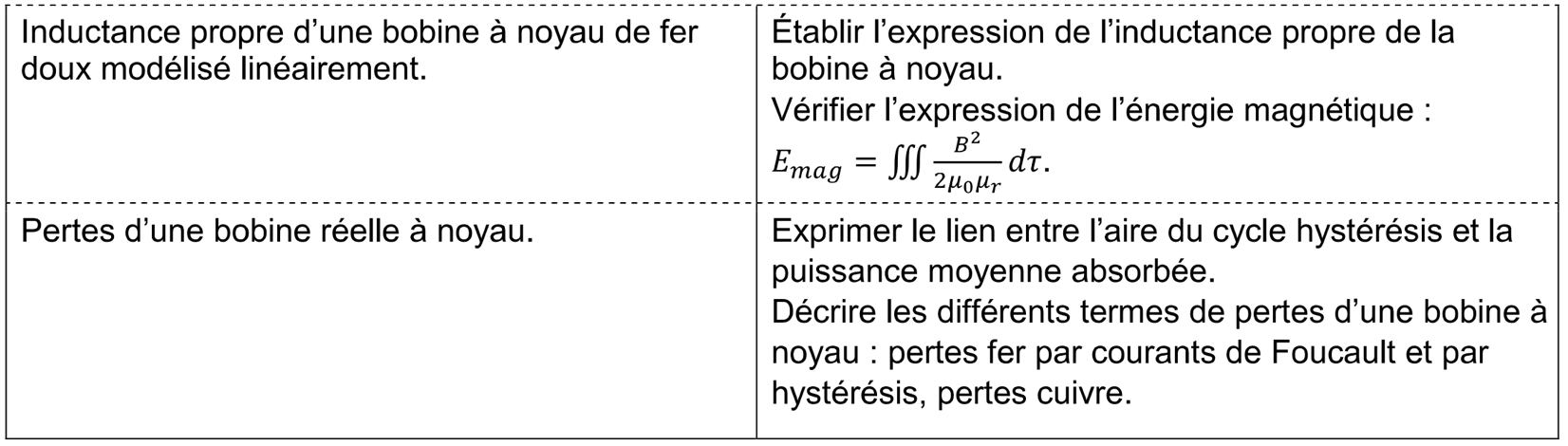 - Circuits magnétiques : notion de réluctance R, de flux magnétique et loi de Hopkinson (semblable à la loi d’Ohm), associations série et parallèle de réluctances, notion d’entrefer et de champ amplifié dans le matériau et/ou dans l’entrefer, analogie avec les ALI.
