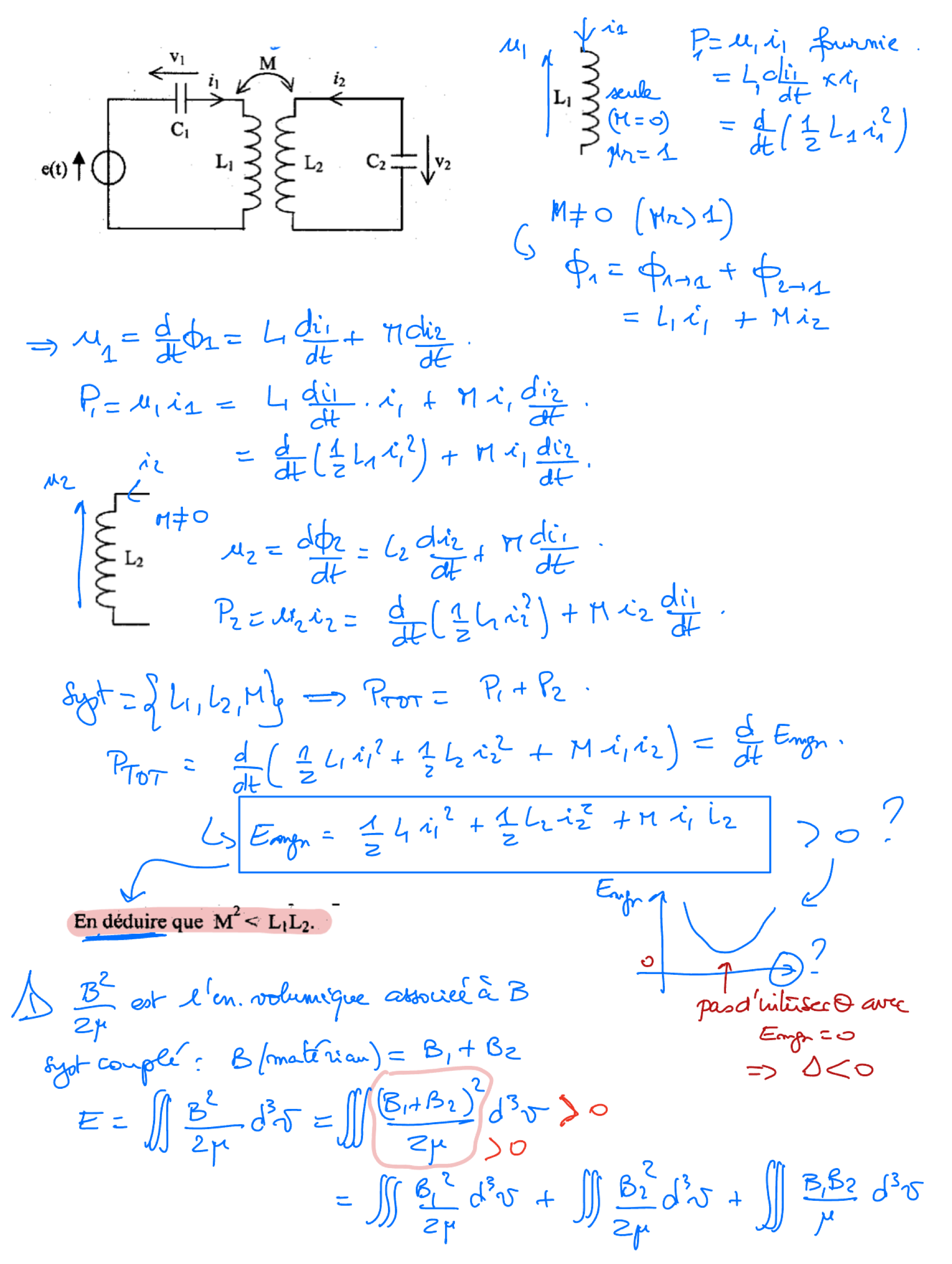 - vecteur de Poynting, cas de la résistance cylindrique, énergie volumique électromagnétique (Pas encore les définitions complètes de L et de la mutuelle M)