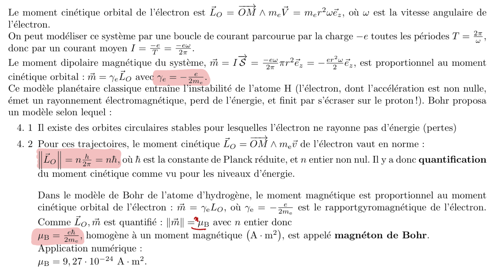 Magnéton de BOHR : quantification du moment dipolaire magnétique.