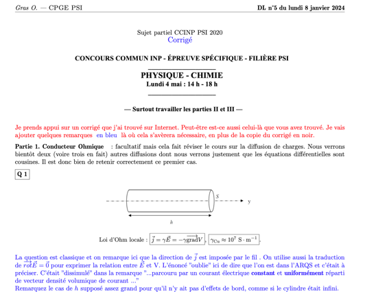 Devoir pour la rentrée + un sujet optionnel PSI*