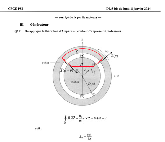 - Moteur synchrone : expression du couple exercé sur un dipôle magnétique soumis à un champ B tournant, champ tournant créé par une bobine ou deux bobines alimentées en courant sinusoïdal. Energie dans l’entrefer : parfois donnée et calcul du couple ensuite.