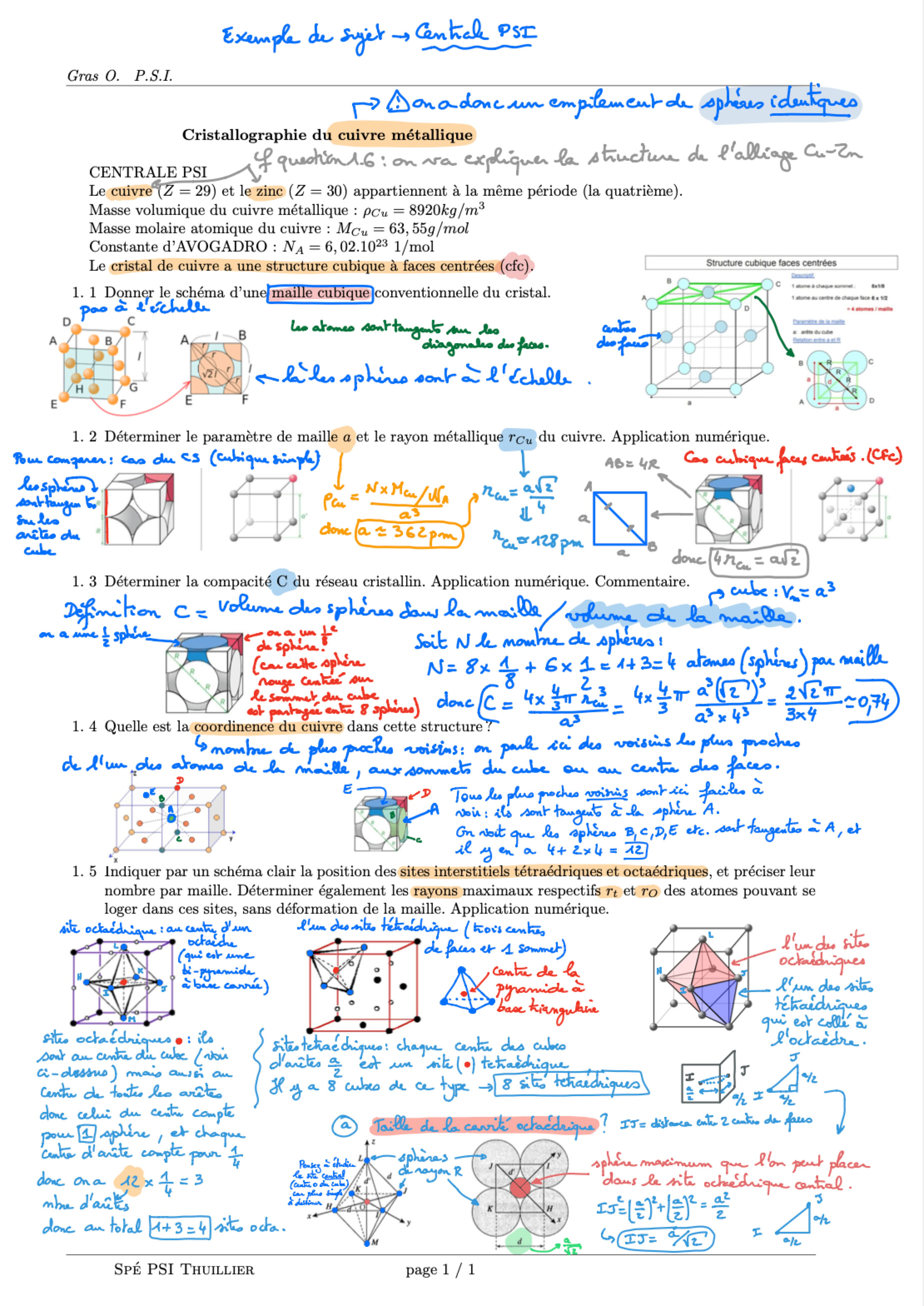 CHIMIE de 1ère année : cristallographie