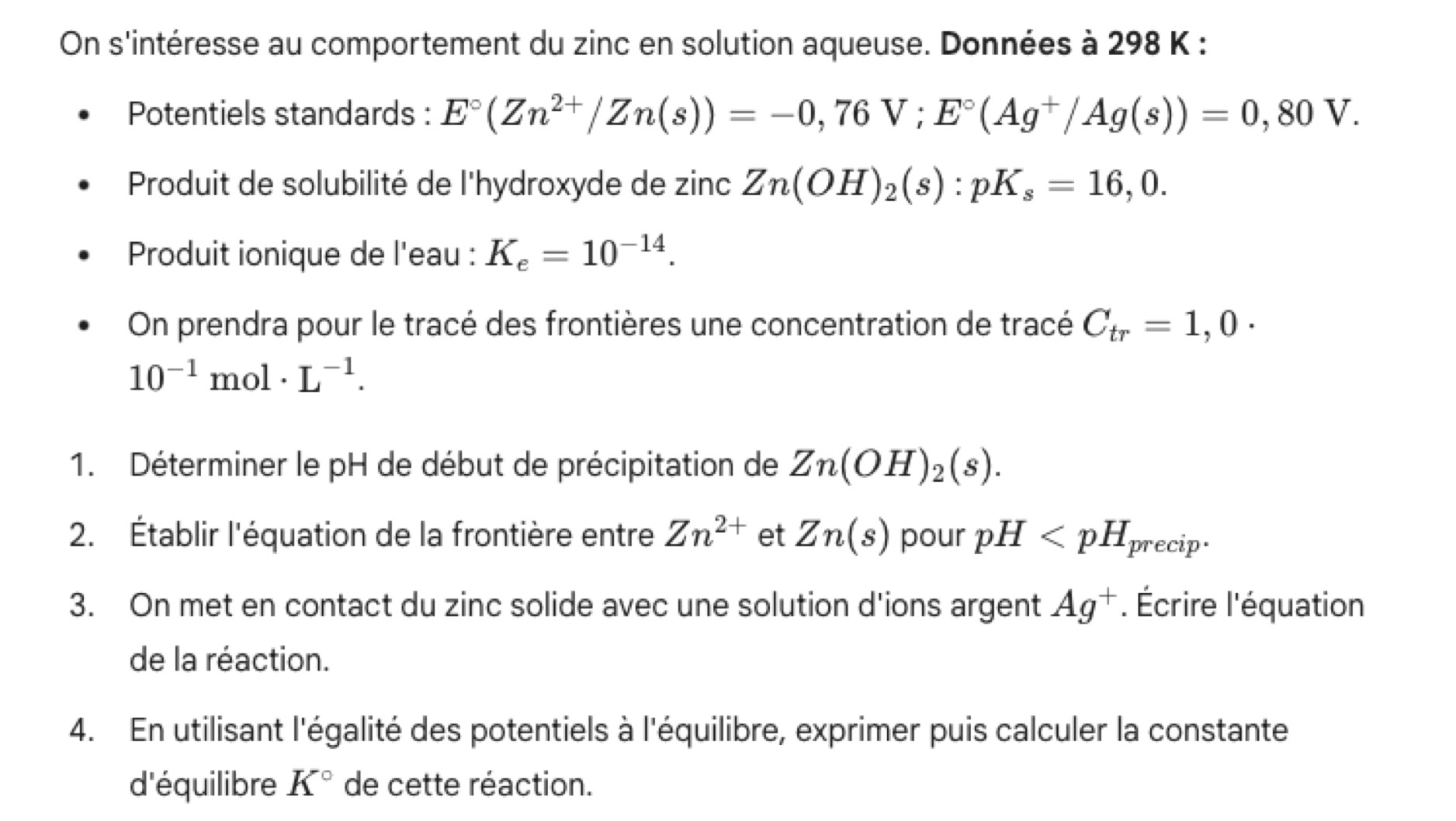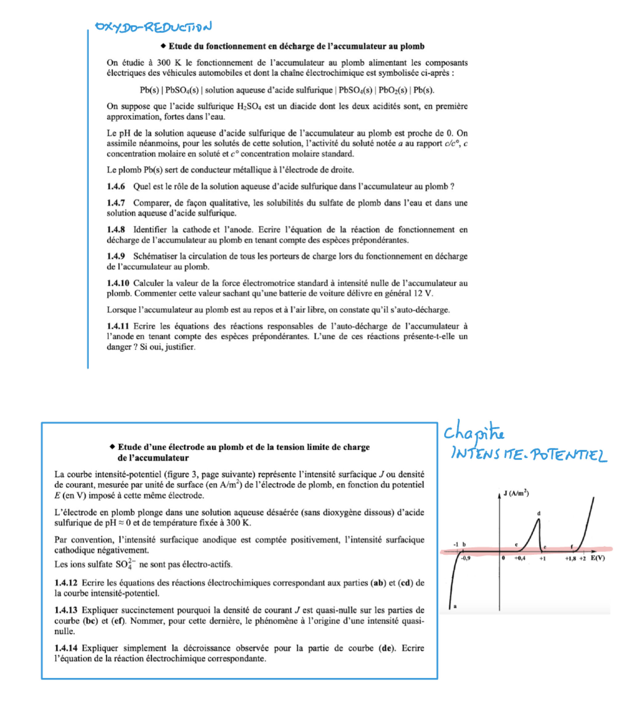 révisions sur l’oxydo-réduction : tracé de diagramme E-pH, calcul d’une pente, calcul de pH de limite de domaine.