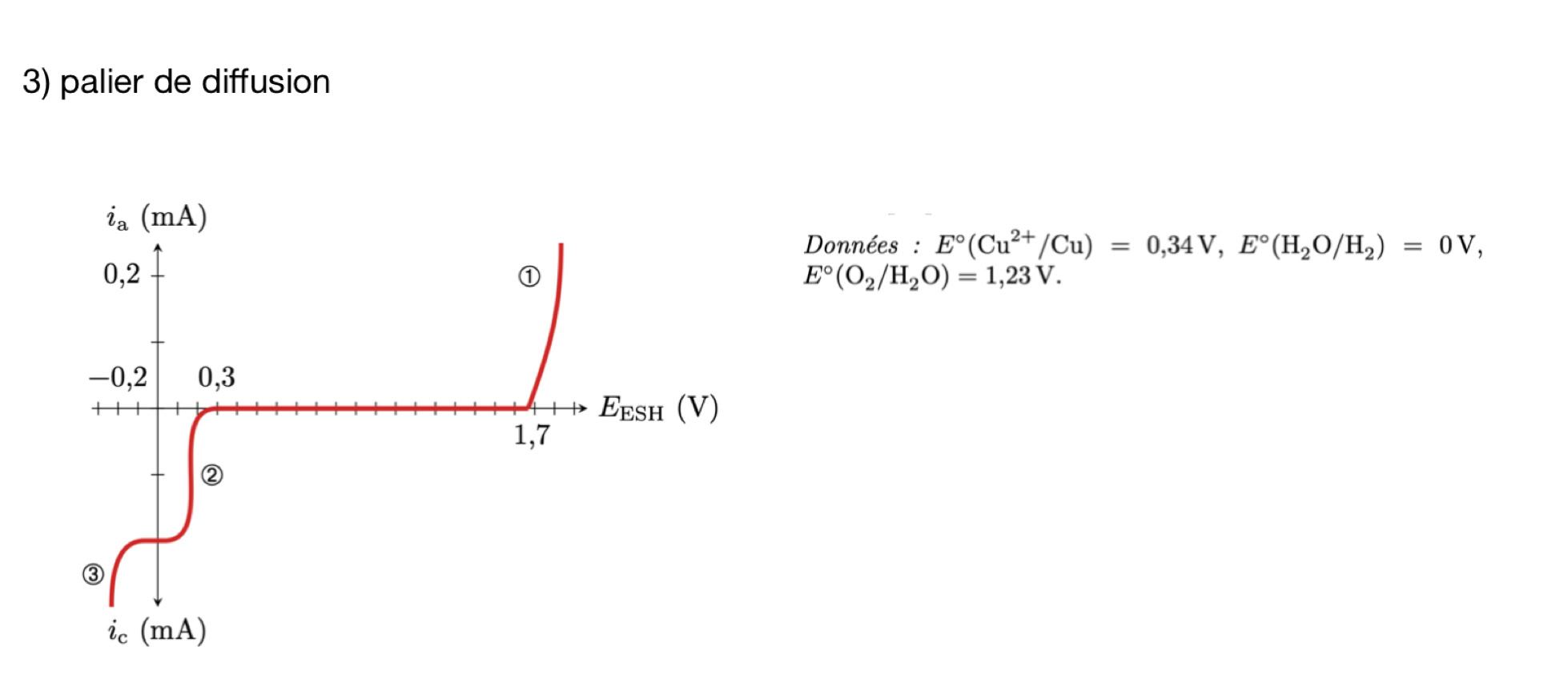 Identifier le caractère lent ou rapide d'un système à partir des courbes courant-potentiel. Identifier les espèces électro-actives pouvant donner lieu à une limitation en courant par diffusion. Identifier des paliers de diffusion limite sur des relevés