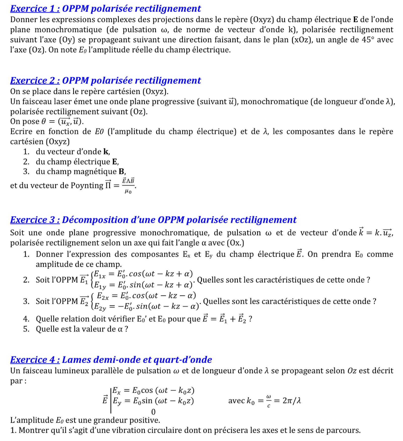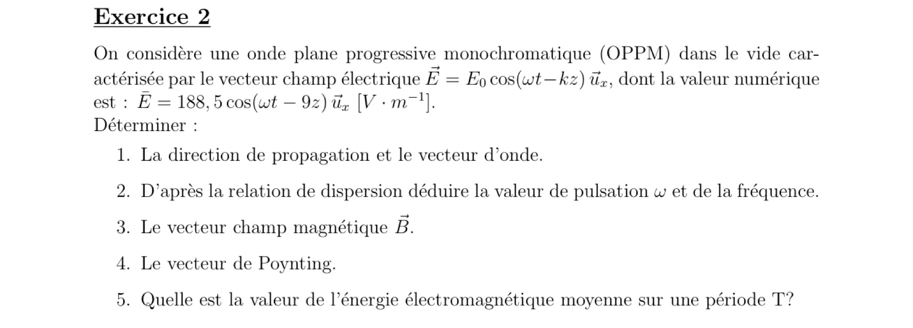 - ondes électromagnétiques dans le vide :