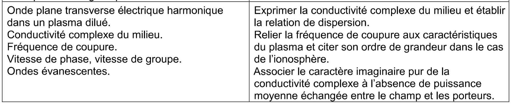 - ondes électromagnétiques dans les plasmas dilués :