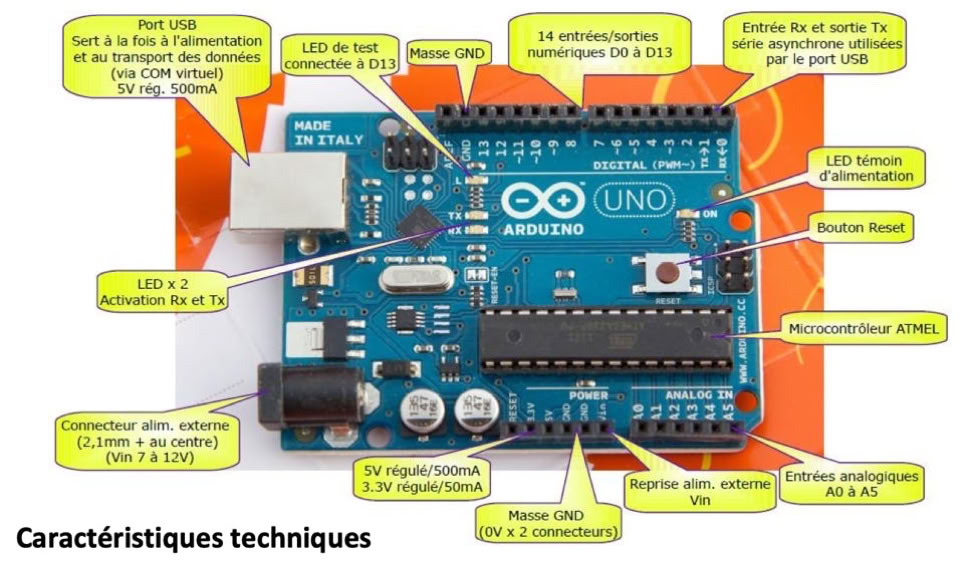 Caractéristiques = connectique voisine de l’Arduino