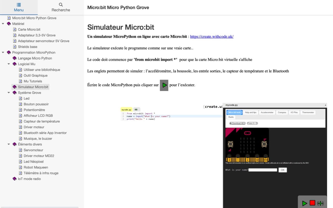Attention : c’est une version simplifiée de Python 3, donc il ne faut pas penser utiliser les bibliothèques élaborées comme NumPy ou PIL. Egalement, le langage est interprété donc plus lent.