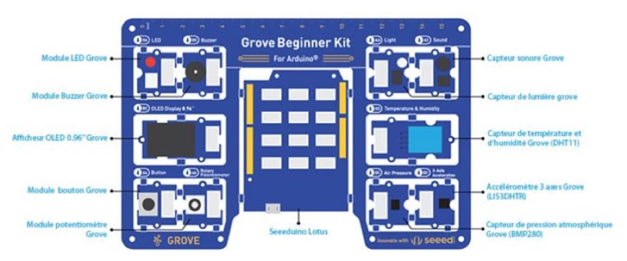 J’ai acheté une carte Grove pour Arduino pour les tests rapides de capteurs Grove (cf capteurs au laboratoire de Physique)