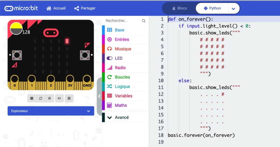 Par contre, un «avantage» pour les impatients : elle peut se programmer aussi en Python (ou plutôt en un Python allégé, MicroPython)